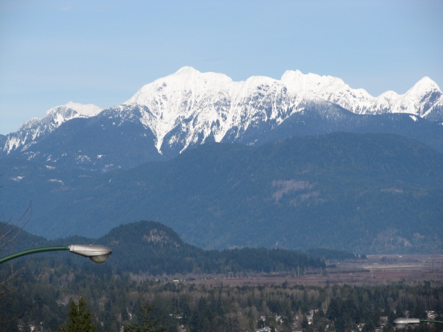 从Coquitlam 我家后院 远望 美国贝克大雪山 Mt. Baker 及 菲沙河 Fraser River