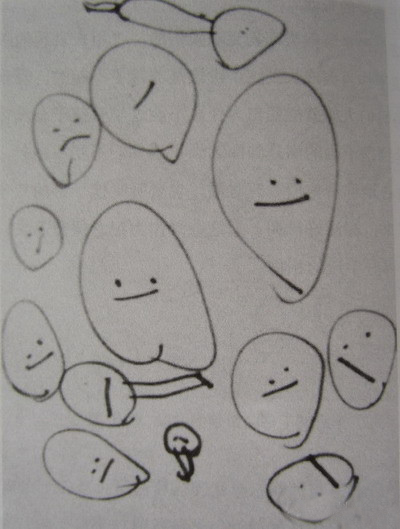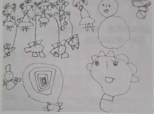 两岁以后孩子开始对自己画的东西以自己对事物的印象加以解释说明,并且这些说明会不断的变化。越是脑海中对各种事物有丰富印象的孩子,越是有能力把一个圆圈想象成各种各样的东西。