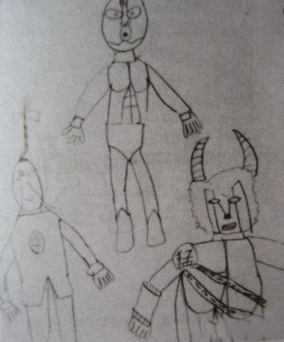 孩子到了七岁左右就会开始分别从正面、侧面、背面三个角度来画人物肖像了,接着就在八岁左右孩子会开始画有动作的人物肖像。