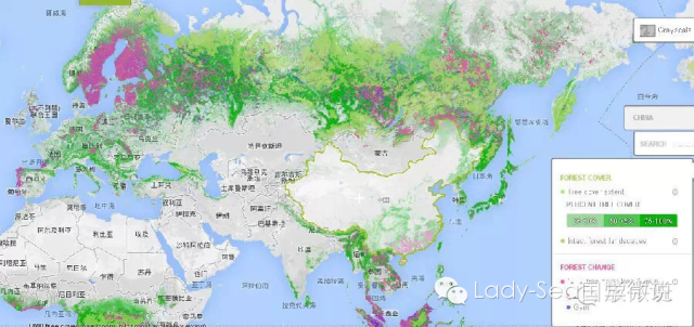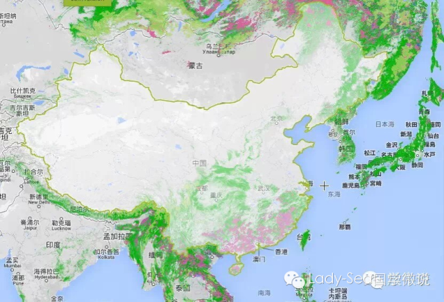 这是亚欧两洲的森林覆盖地图:现在我们拉近一点,看看中国和周边: 我们被包围了