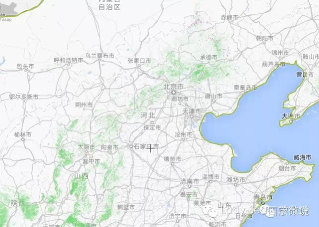 现在再拉近一点,看看华北华东地区: 好吧,有一点点绿。