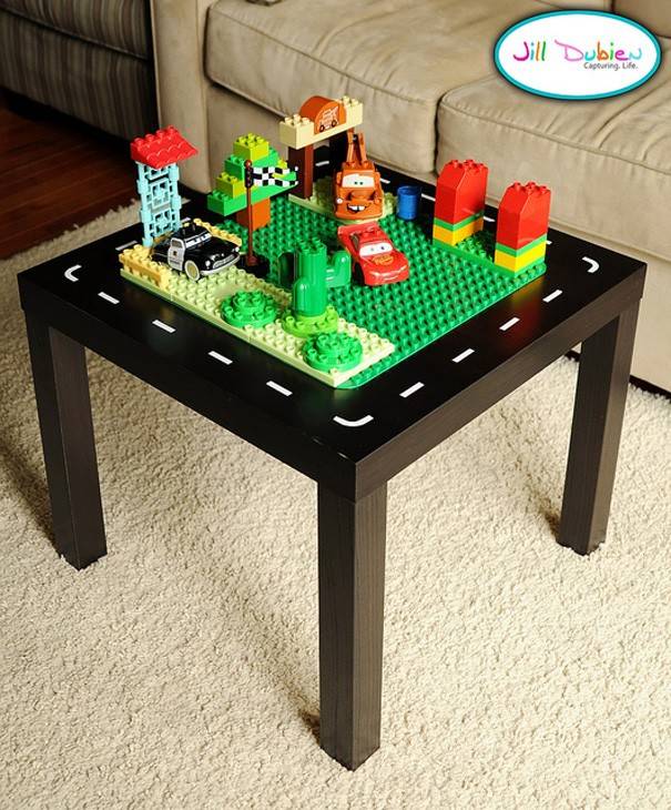 又一款超便宜的小桌子。粘几块大的乐高板,变成lego table。我在玩具店见过这种乐高桌面,贵得要命。DIY这款基本跟玩具店卖的没差别嘛。
