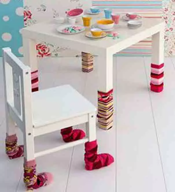 最后上一个保护地板不被划伤的办法:用小孩的旧袜子。我觉得还满有童趣的。