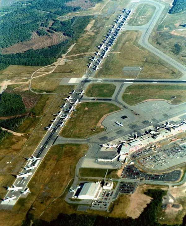 9.11当天,大批欧洲飞来的航班备降加拿大哈利法克斯机场,由于飞机太多,不得不分成两排停在跑道上。