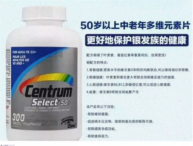 根据50岁以上人的特征而研制。维C、E、多种类黄酮和硫辛酸提供抗氧化协助,增强体质