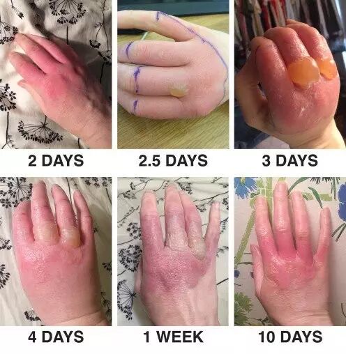 它的汁液沾到皮肤上之后,同时晒到太阳,皮肤会烧伤、水泡;即使最后治好了,这一片的皮肤也会变黑。