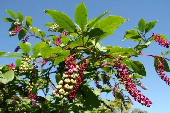 商陆的树可以长到大概3米高,果实一串串的,很像什么好吃的野果。实际上,它的叶子、根部、茎和果实都有毒,吃了之后会导致人癫痫、惊厥、昏迷、呕吐。