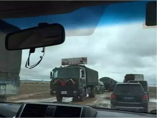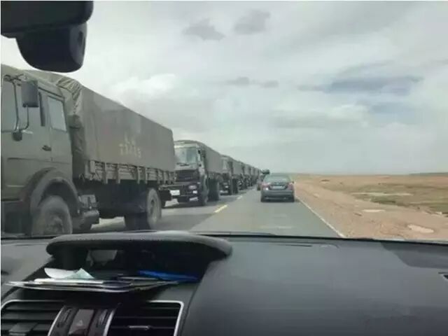 近日,在青海格尔木地区,解放军大批军车车队艰难地向青藏高原腹地进发。
