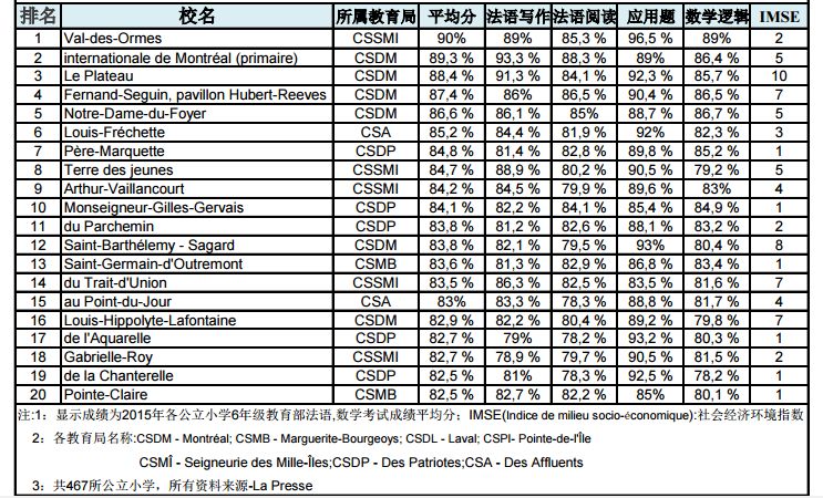 蒙特利尔公立小学排名