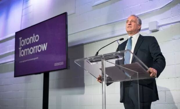 多伦多市长John Tory发表了一份简短的声明,称赞该计划的创新和创造就业机会的潜力,虽然没有提及到是否支持划分更大的地块用于建设,但有提到他认为这是一个正确的方式发展多伦多的湖滨,更进一步的消息将在政府仔细审理项目开发草案后公布。