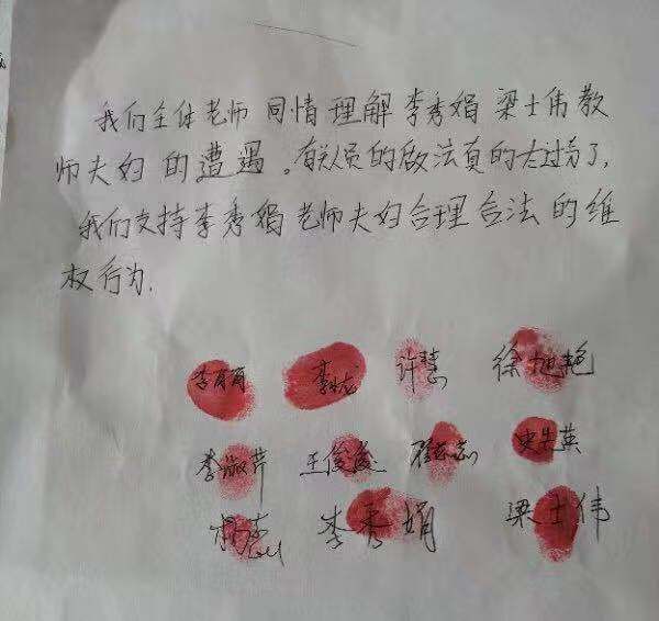 学校全体老师同情我家的遭遇,自愿联名