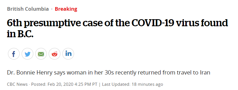 难过! 担心! BC 省第六例新冠病毒感染患者被确诊......消息如下: