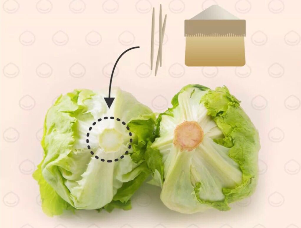 方法2:在菜芯上插几根牙签阻断生长,能保鲜3周左右。