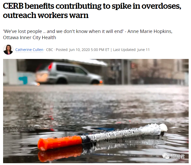 今天(6月11日),CBC发表报道指,非法吸毒过量死亡的大幅飙升的罪魁祸首或许就是CERB福利金。