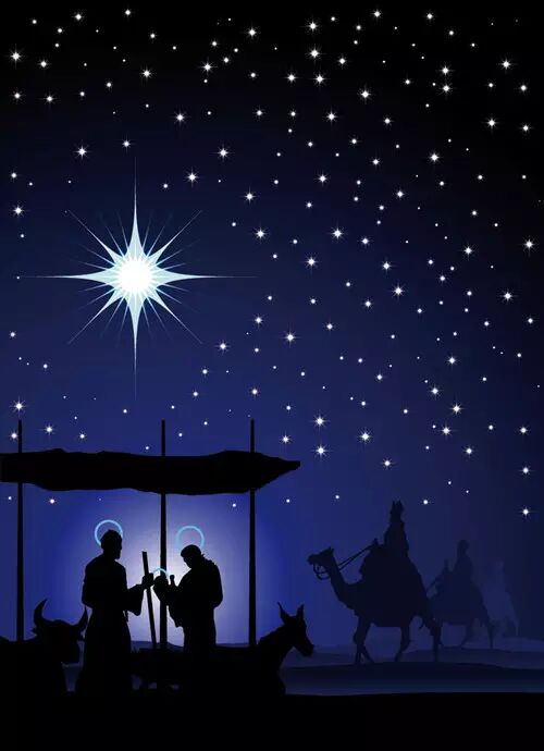 众明星都望着,主睡的地方。小小的主耶稣,睡在干草上。